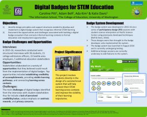 Pitt, C., Bell, A., Kim, A. & Davis, K. (2017, March). Digital Badges for STEM Education. Poster presented at the annual University of Washington Information School Research Fair, Seattle, WA.